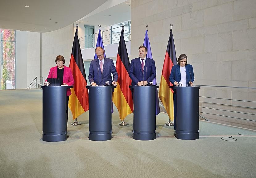 Finanzminister Lars Klingbeil (SPD) ergänzte, man stelle den Umstieg auf E-Mobilität und die Klimaziele nicht in Frage. Dennoch zeigte er sich offen für eine Lockerung der deutschen Position in Brüssel, etwa bei Plug-in-Hybriden und sogenannten Range Extendern, also zusätzlichen Aggregate in einem Elektrofahrzeug, die die Reichweite erhöhen. „Wir müssen außerdem unser Knowhow sichern und auf Zukunftstechnologien setzen“, erklärte er. „Dazu gehören neue Antriebsformen und Batterietechnologie `made in Germany`.“
